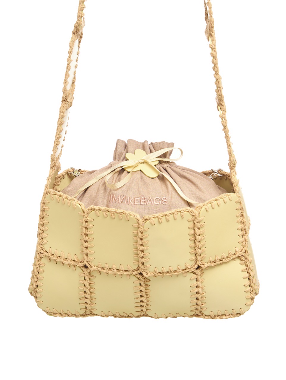 Мы шьем SEVA из лоскутков натуральной кожи, оставшихся от других сумок, и стоковых коллекций, а скрепляем их цветным шнуром. К каждой сумке в комплекте идет текстильный пыльник, он крепится на два карабина.